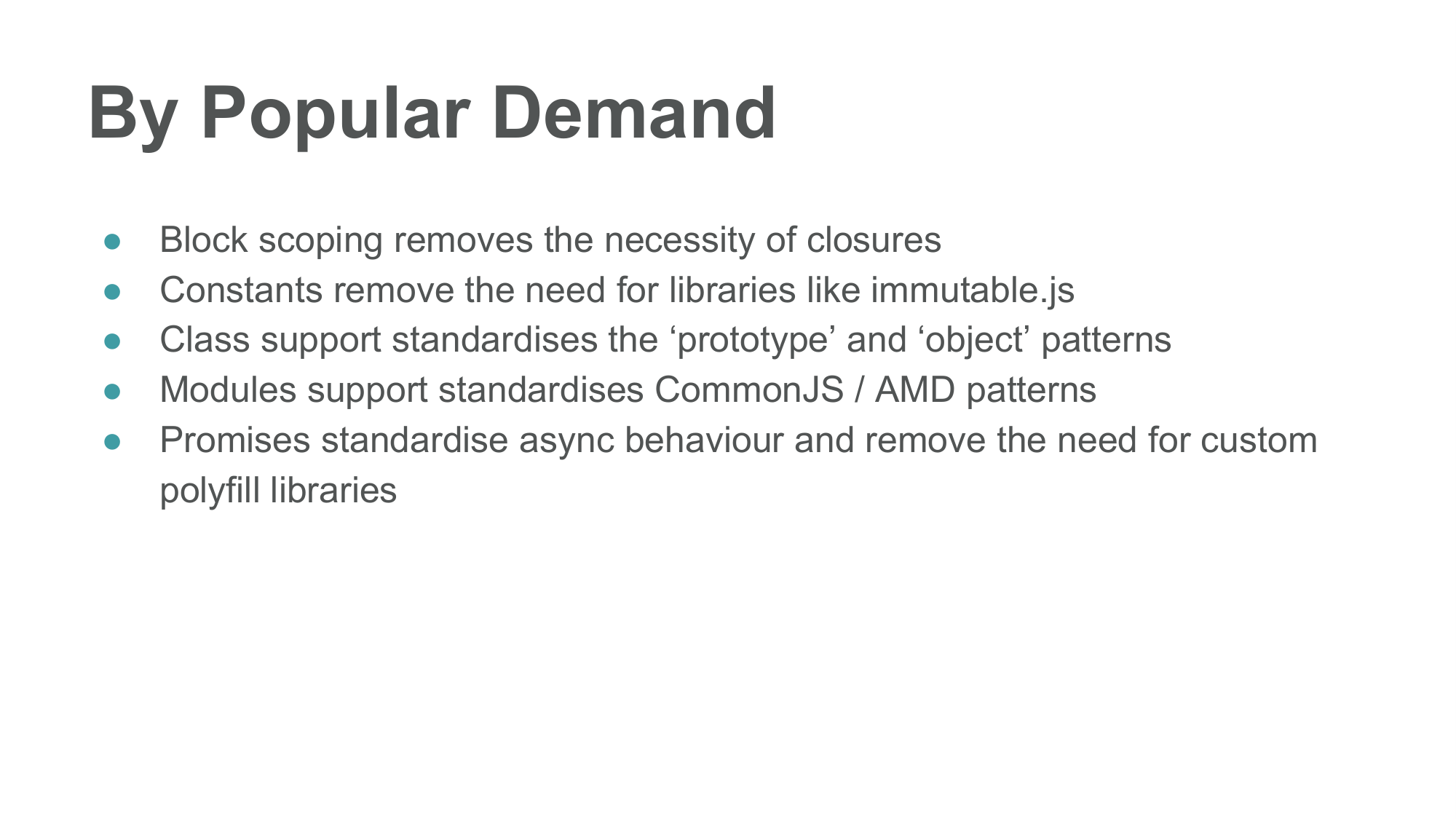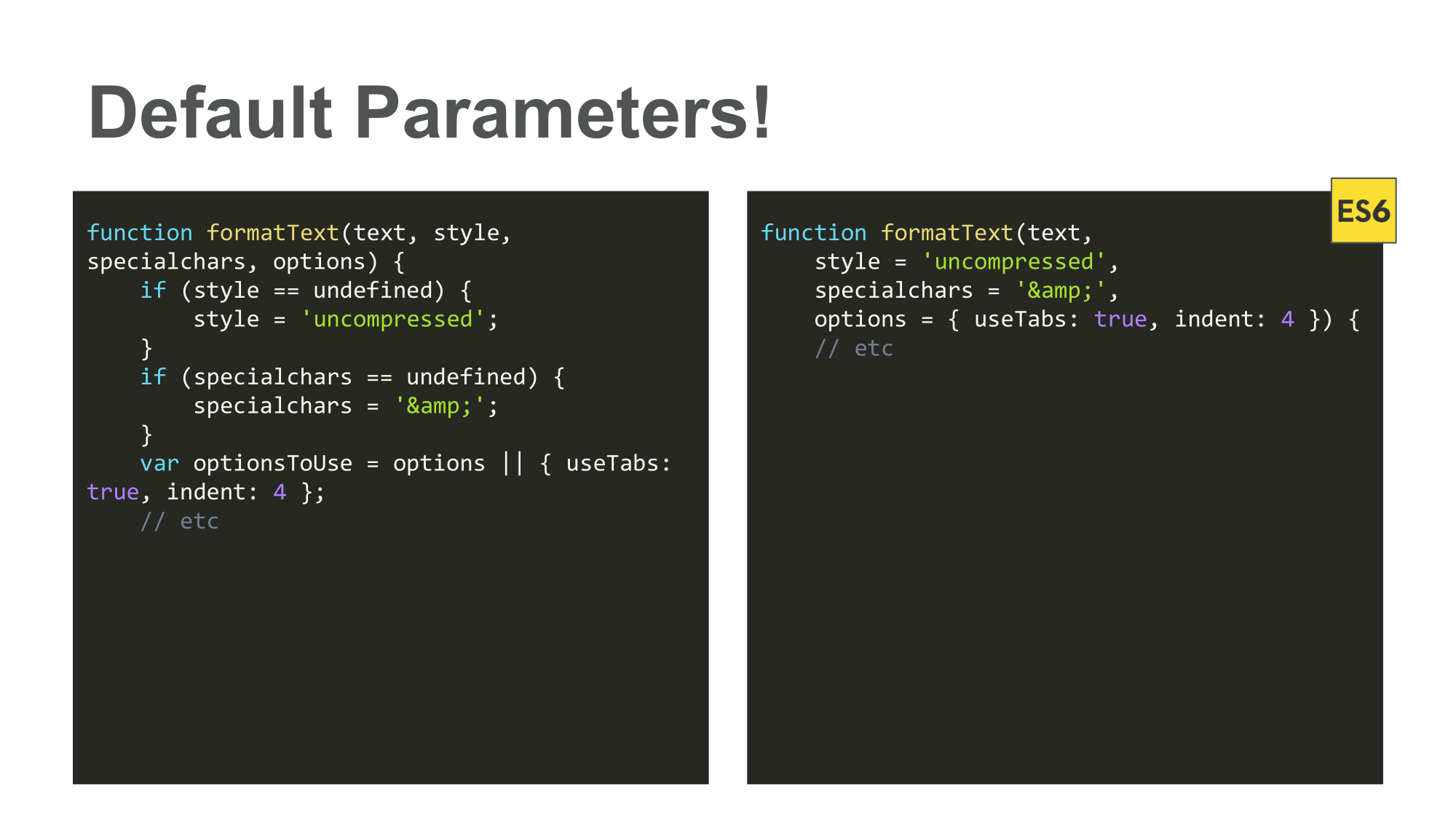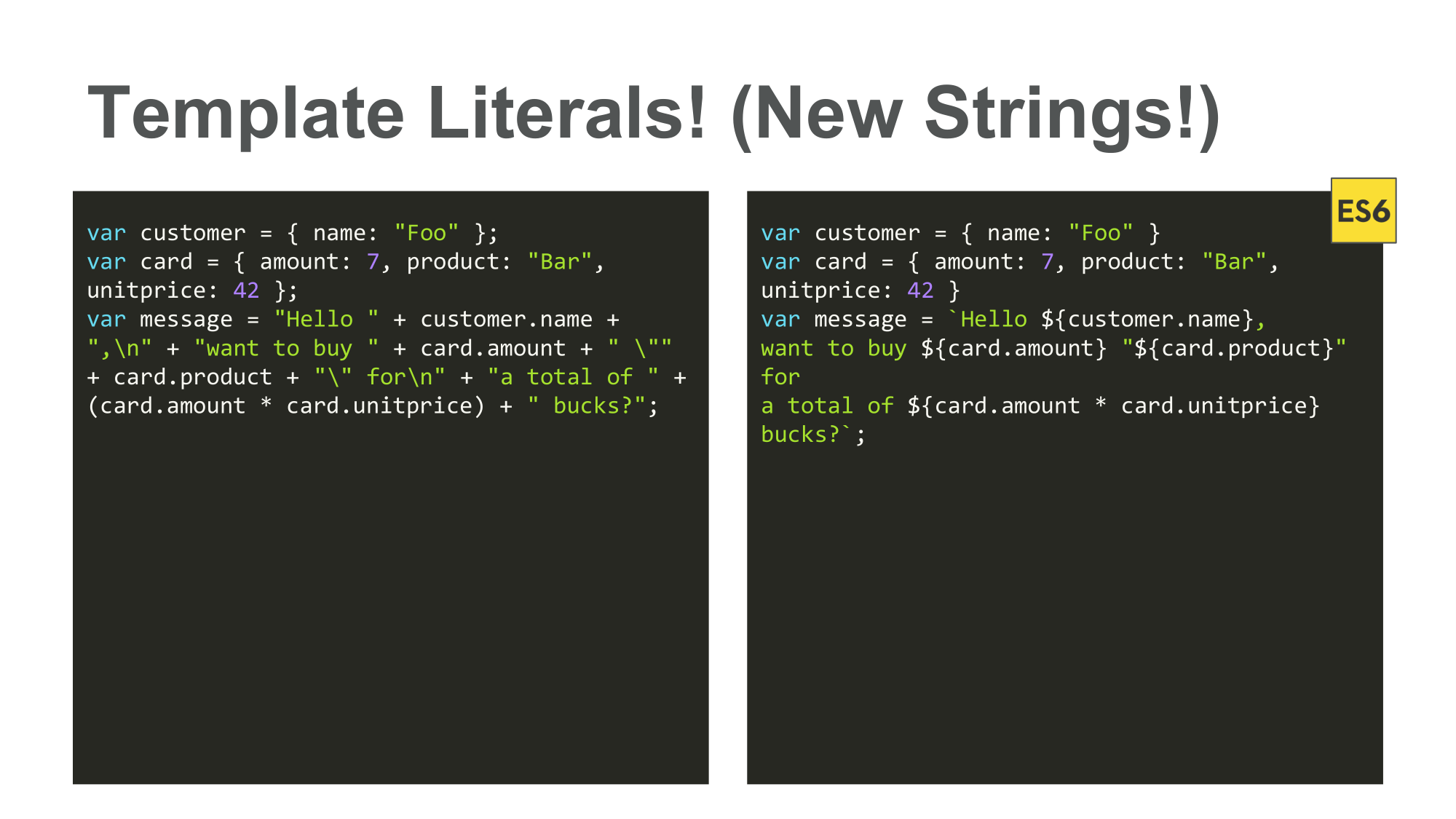 This was a Brown Bag / Lunch n’ Learn session on the topic of the new Javascript syntax and capabilities offered by ECMAScript 6.